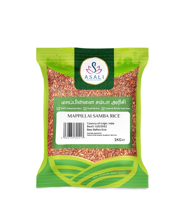 Mapillai Samba or “Bride Groom Rice” is a native variety of rice, which is red in colour and is grown predominantly in Tamil Nadu. It’s well suited to organic farming because it is hardy and demands little or no fertilisers or pesticides. It is a 160 days crop. This rice comes from Thiruvannamalai in Tamilnadu.